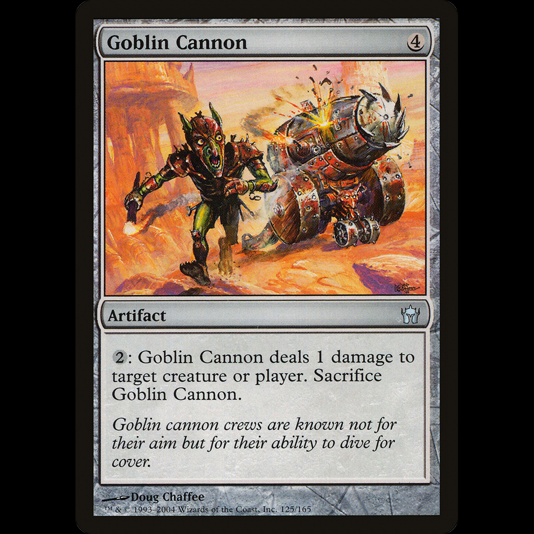 : Goblin Cannon deals 1 damage to any target. Sacrifice Goblin Cannon.