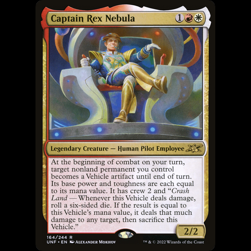 At the beginning of combat on your turn, choose target nonland permanent you control. Until end of turn, it becomes a Vehicle artifact with base power and toughness each equal to its mana value, and it gains crew 2 and "Crash Land — Whenever this Vehicle deals damage, roll a six-sided die. If the result is equal to this Vehicle's mana value, sacrifice this Vehicle, then it deals that much damage to any target."