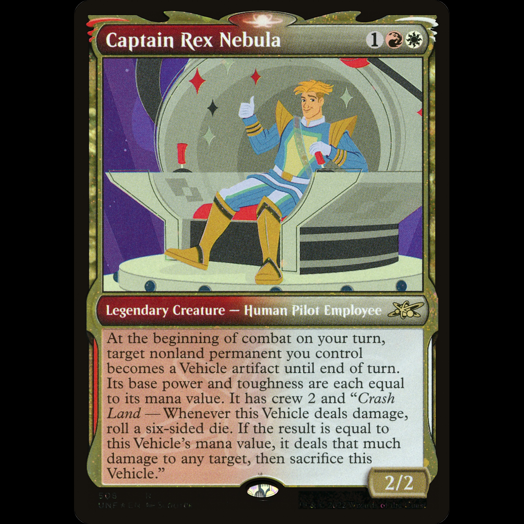 At the beginning of combat on your turn, choose target nonland permanent you control. Until end of turn, it becomes a Vehicle artifact with base power and toughness each equal to its mana value, and it gains crew 2 and "Crash Land — Whenever this Vehicle deals damage, roll a six-sided die. If the result is equal to this Vehicle's mana value, sacrifice this Vehicle, then it deals that much damage to any target."
