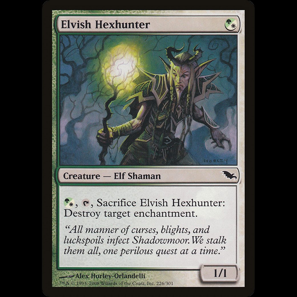 G/W, , Sacrifice Elvish Hexhunter: Destroy target enchantment.
