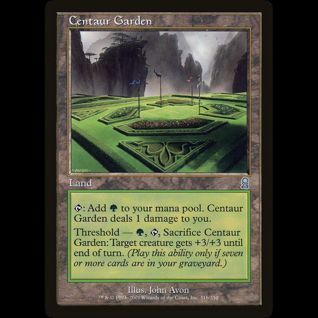 Threshold — , , Sacrifice Centaur Garden: Target creature gets +3/+3 until end of turn. Activate only if seven or more cards are in your graveyard.