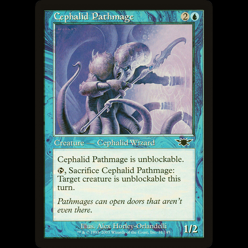 , Sacrifice Cephalid Pathmage: Target creature can't be blocked this turn.