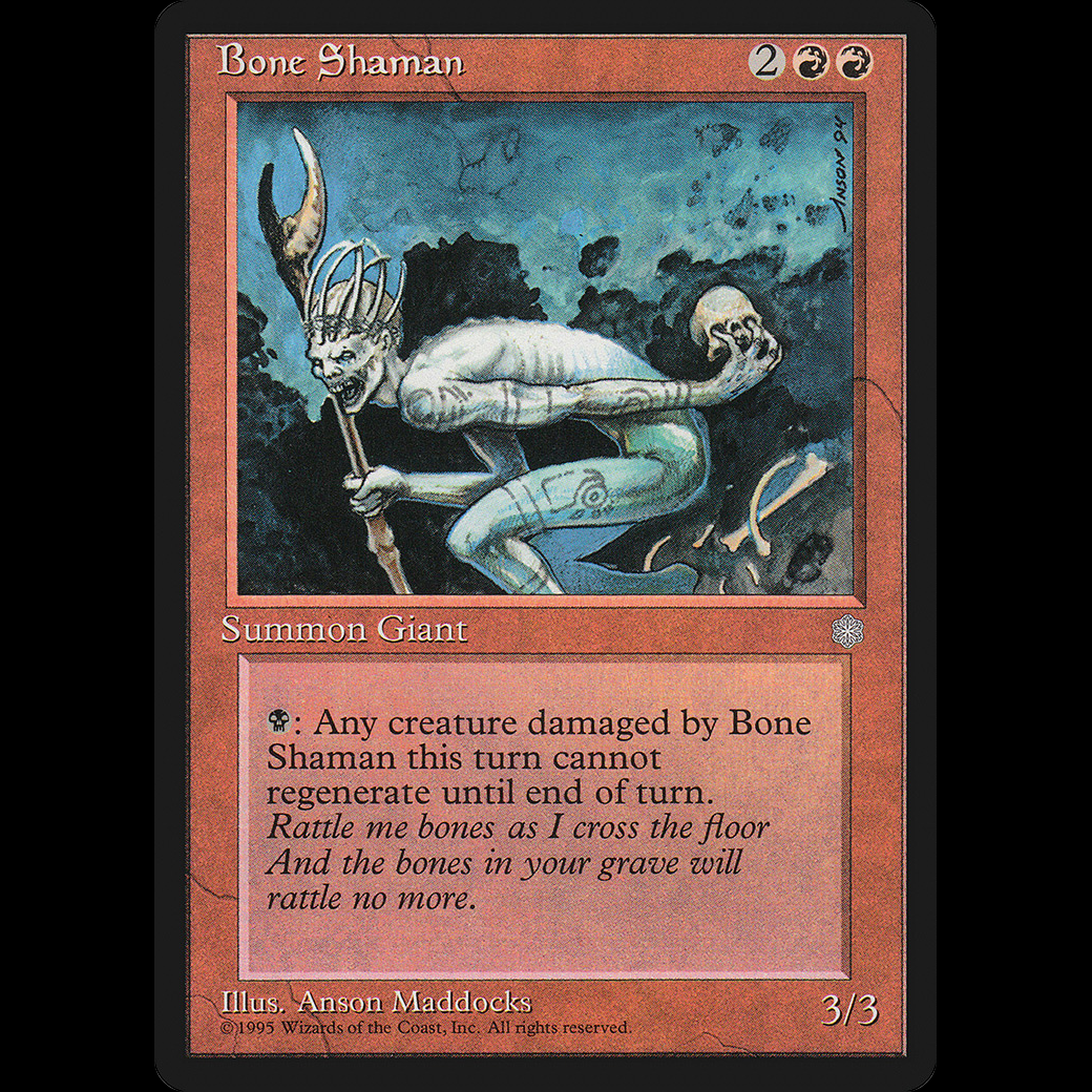 : Until end of turn, Bone Shaman gains "Creatures dealt damage by Bone Shaman this turn can't be regenerated this turn."
