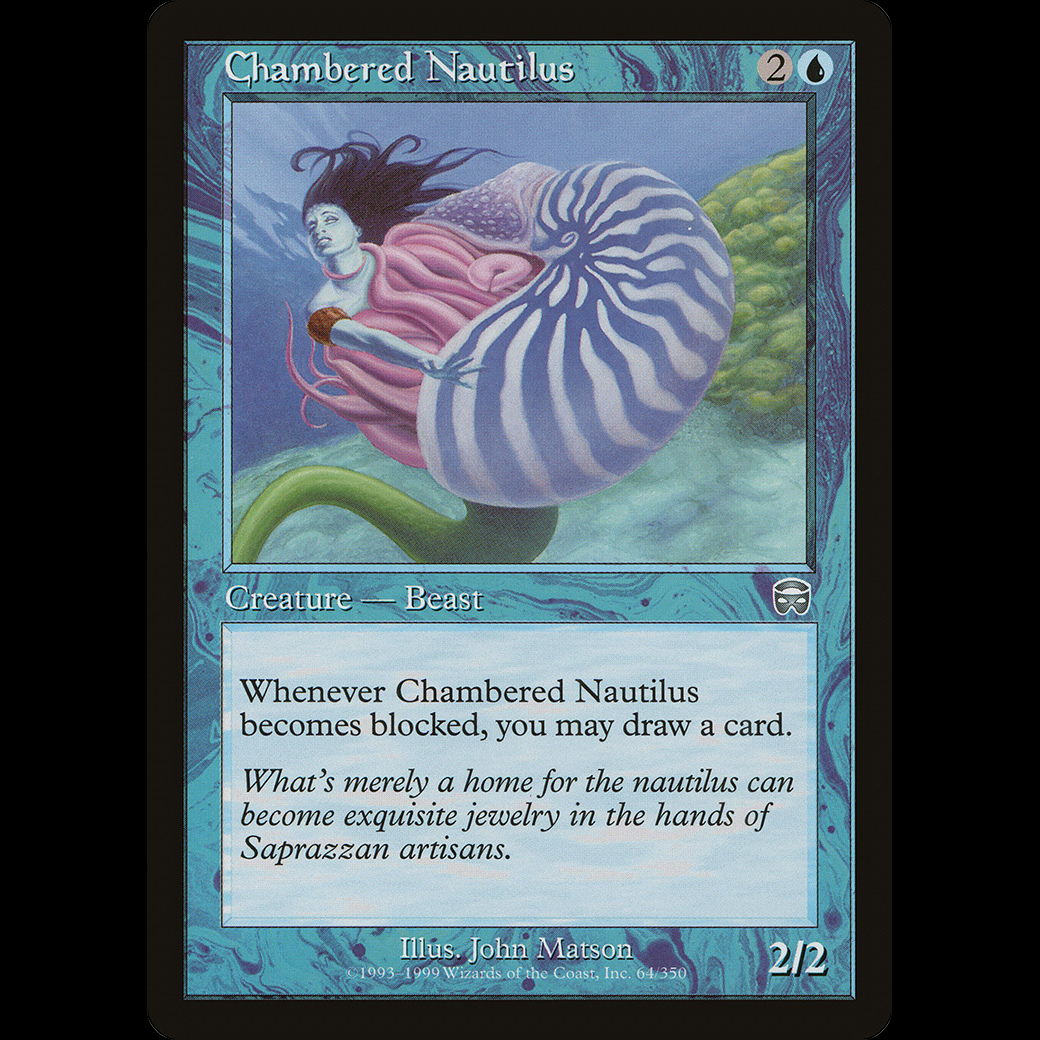 Whenever Chambered Nautilus becomes blocked, you may draw a card.