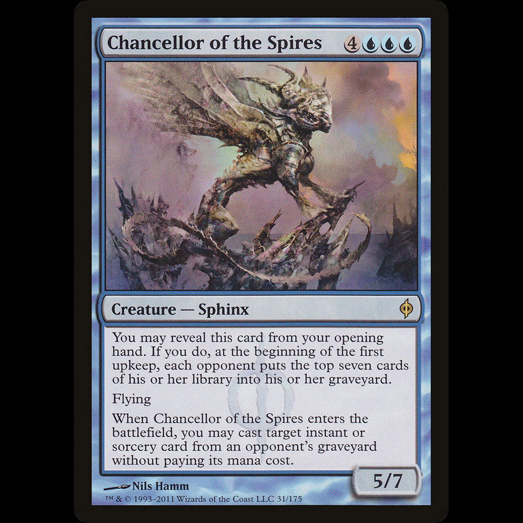 When Chancellor of the Spires enters the battlefield, you may cast target instant or sorcery card from an opponent's graveyard without paying its mana cost.