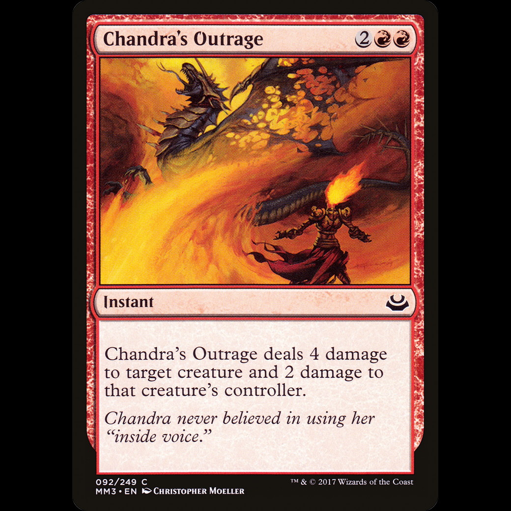 Chandra's Outrage deals 4 damage to target creature and 2 damage to that creature's controller.
