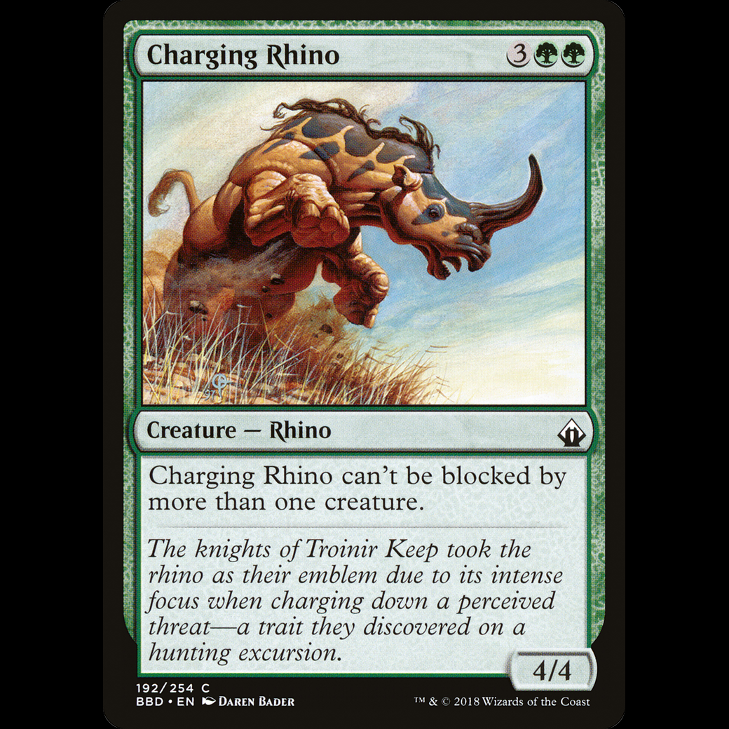 MTG Charging Rhino Battlebond bbd#192Charging Rhino can't be blocked by more than one creature.