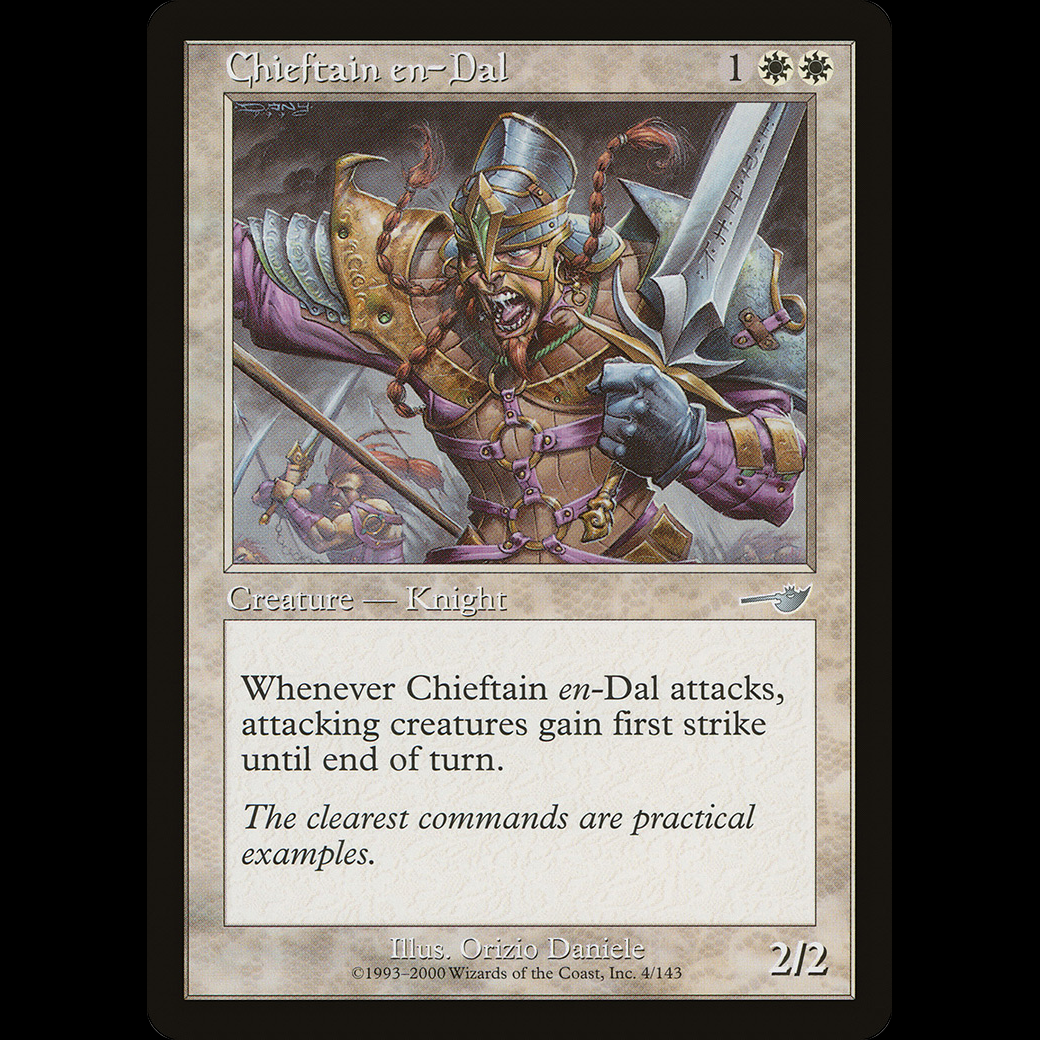 Whenever Chieftain en-Dal attacks, attacking creatures gain first strike until end of turn.