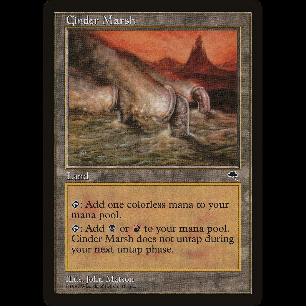 : Add or . Cinder Marsh doesn't untap during your next untap step.