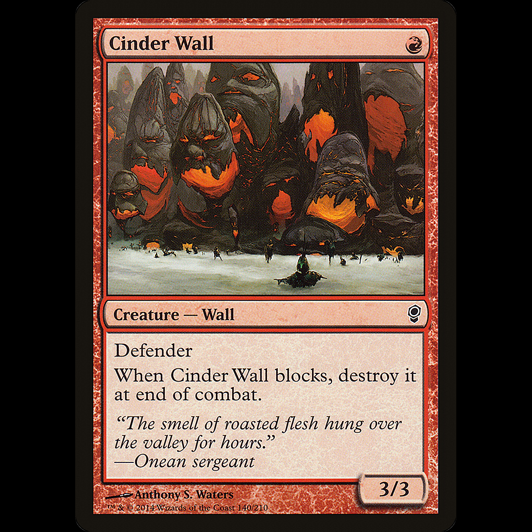 MTG Cinder Wall ConspiracyDefender When Cinder Wall blocks, destroy it at end of combat.