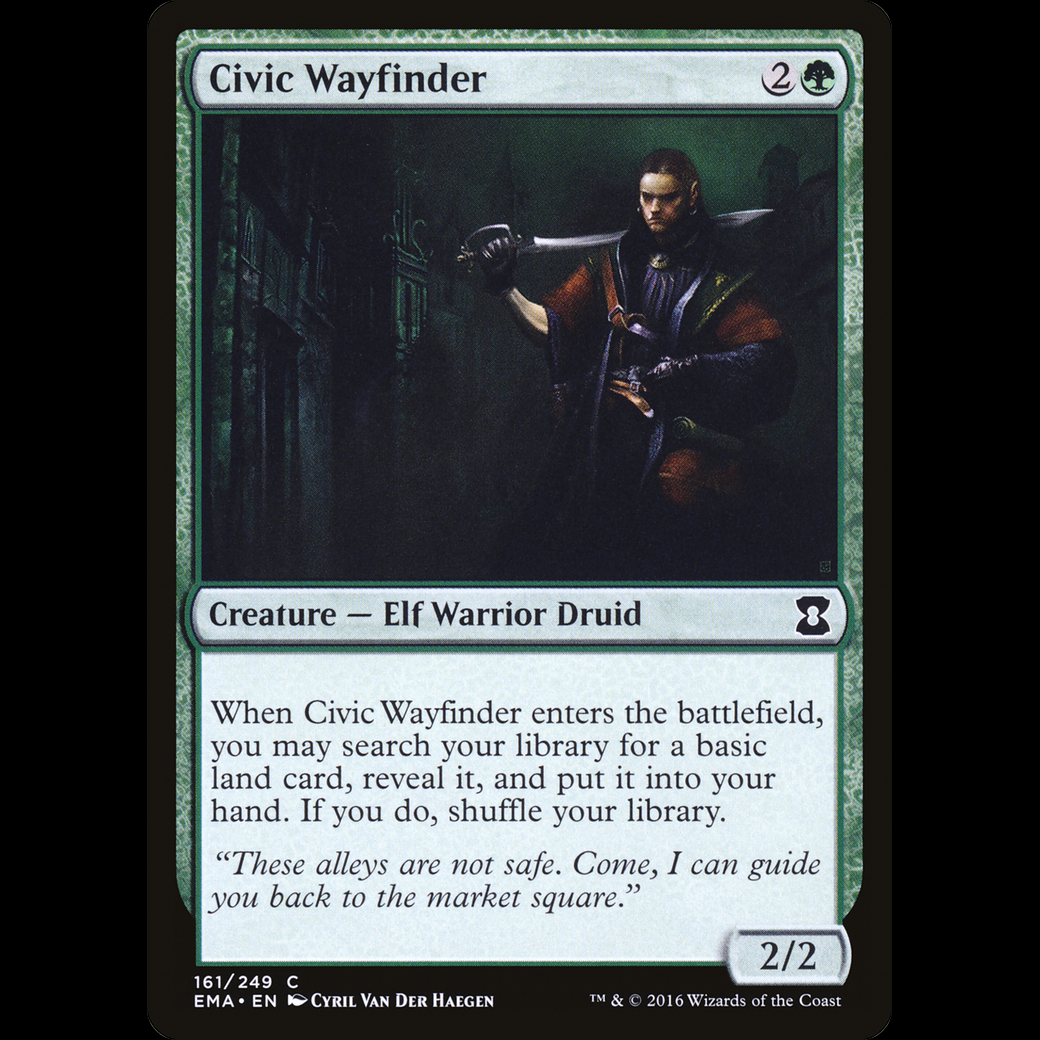 When Civic Wayfinder enters the battlefield, you may search your library for a basic land card, reveal it, put it into your hand, then shuffle.