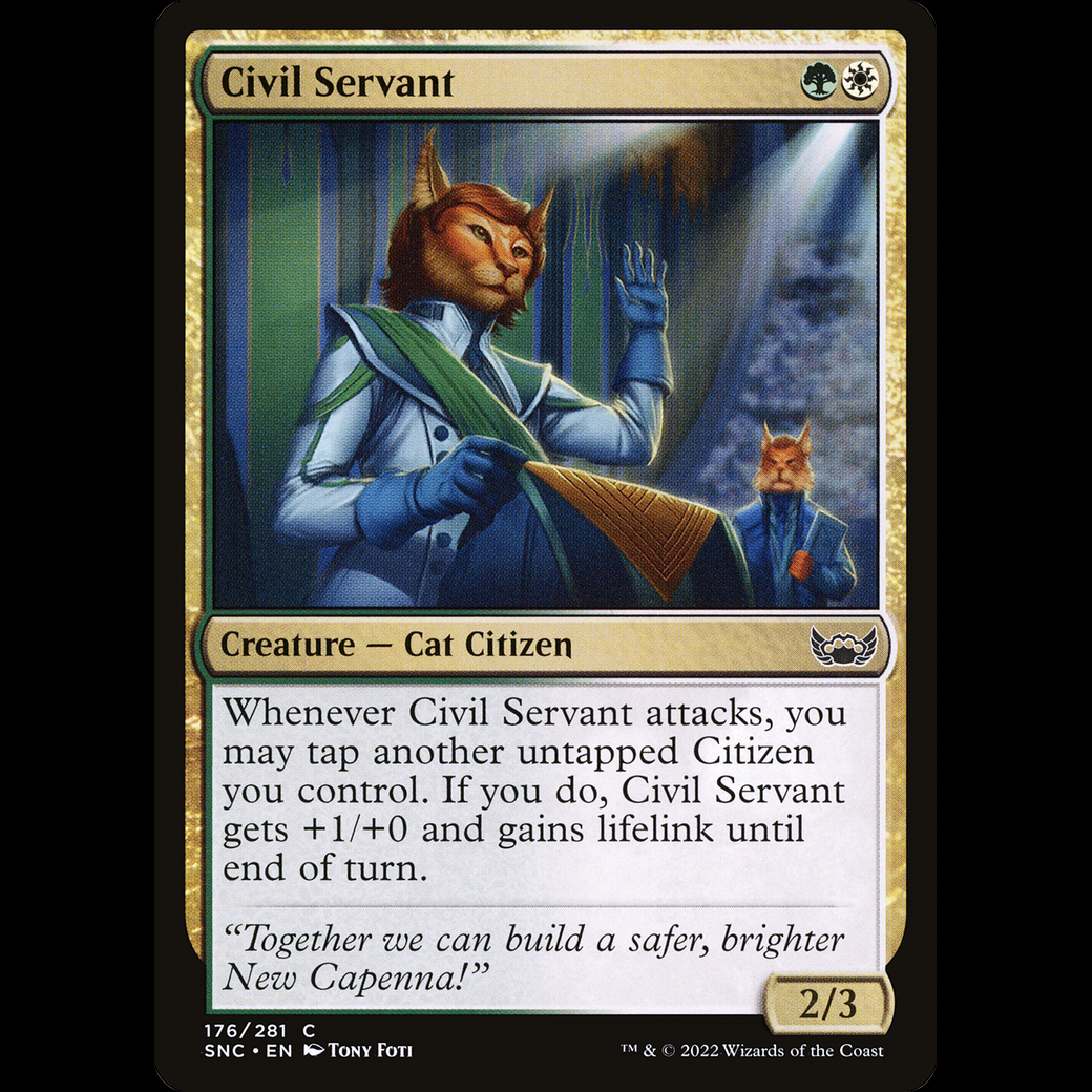 Whenever this creature attacks, you may tap another untapped Citizen you control. If you do, this creature gets +1/+0 and gains lifelink until end of turn.