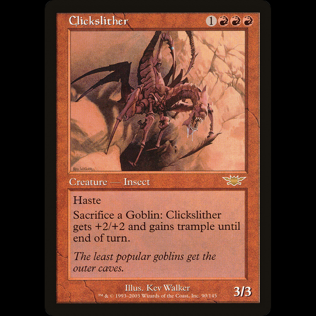 Sacrifice a Goblin: Clickslither gets +2/+2 and gains trample until end of turn.