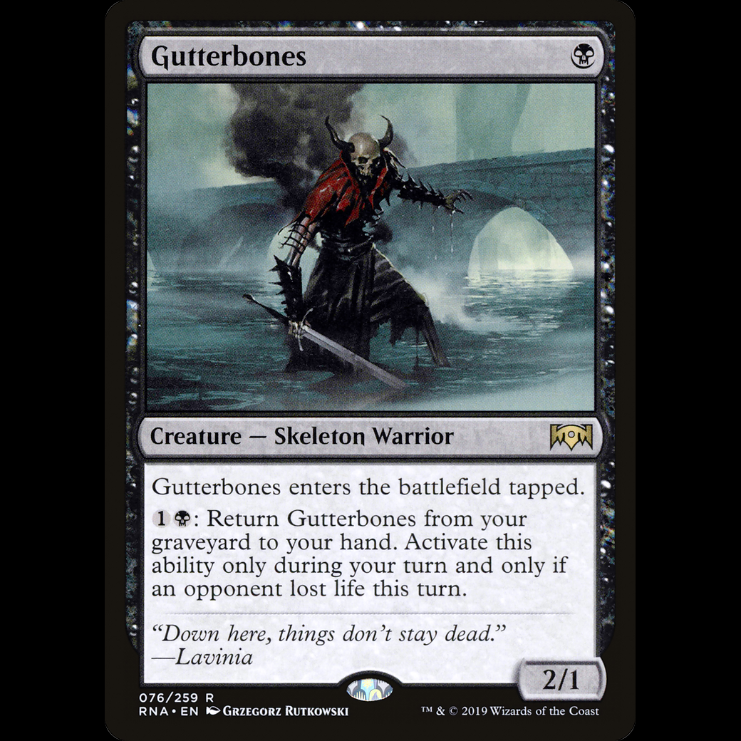 : Return Gutterbones from your graveyard to your hand. Activate only during your turn and only if an opponent lost life this turn.