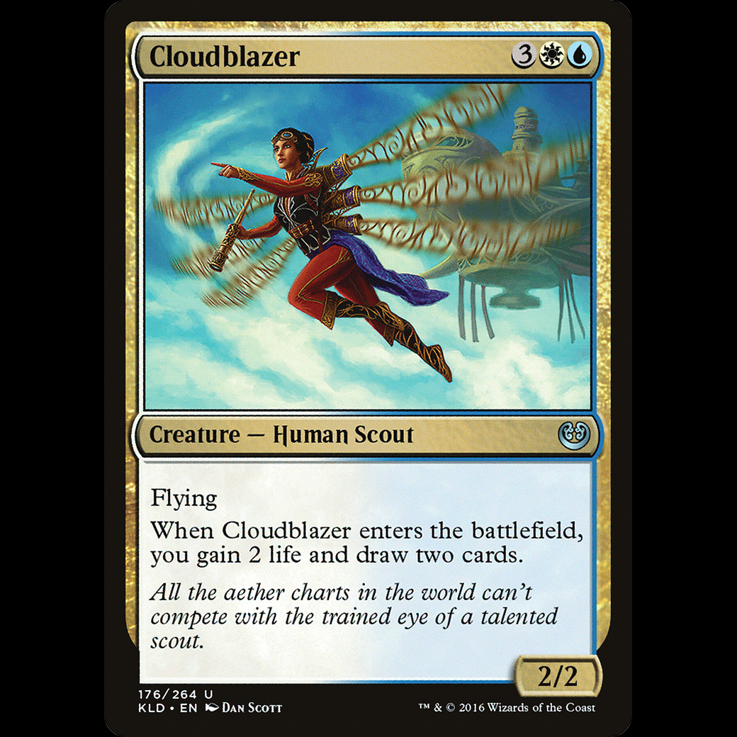 When Cloudblazer enters the battlefield, you gain 2 life and draw two cards.