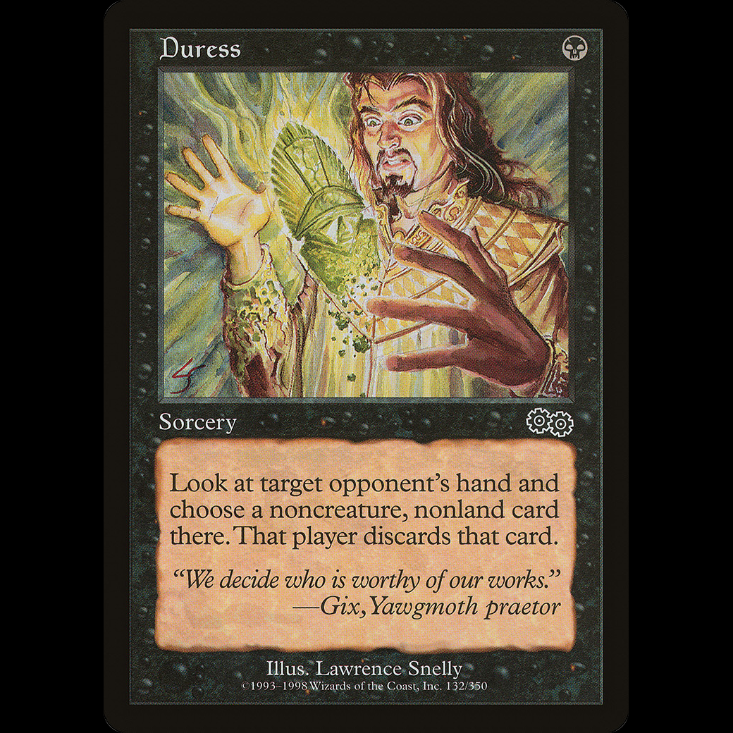 Target opponent reveals their hand. You choose a noncreature, nonland card from it. That player discards that card.