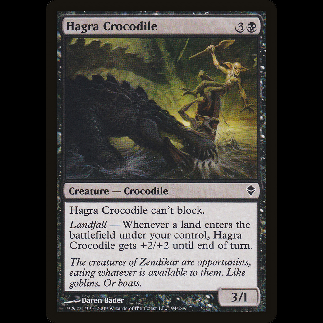 Landfall — Whenever a land enters the battlefield under your control, Hagra Crocodile gets +2/+2 until end of turn.