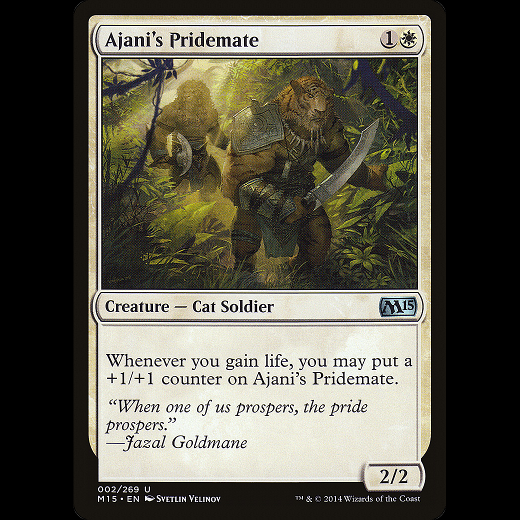 Whenever you gain life, put a +1/+1 counter on Ajani's Pridemate.