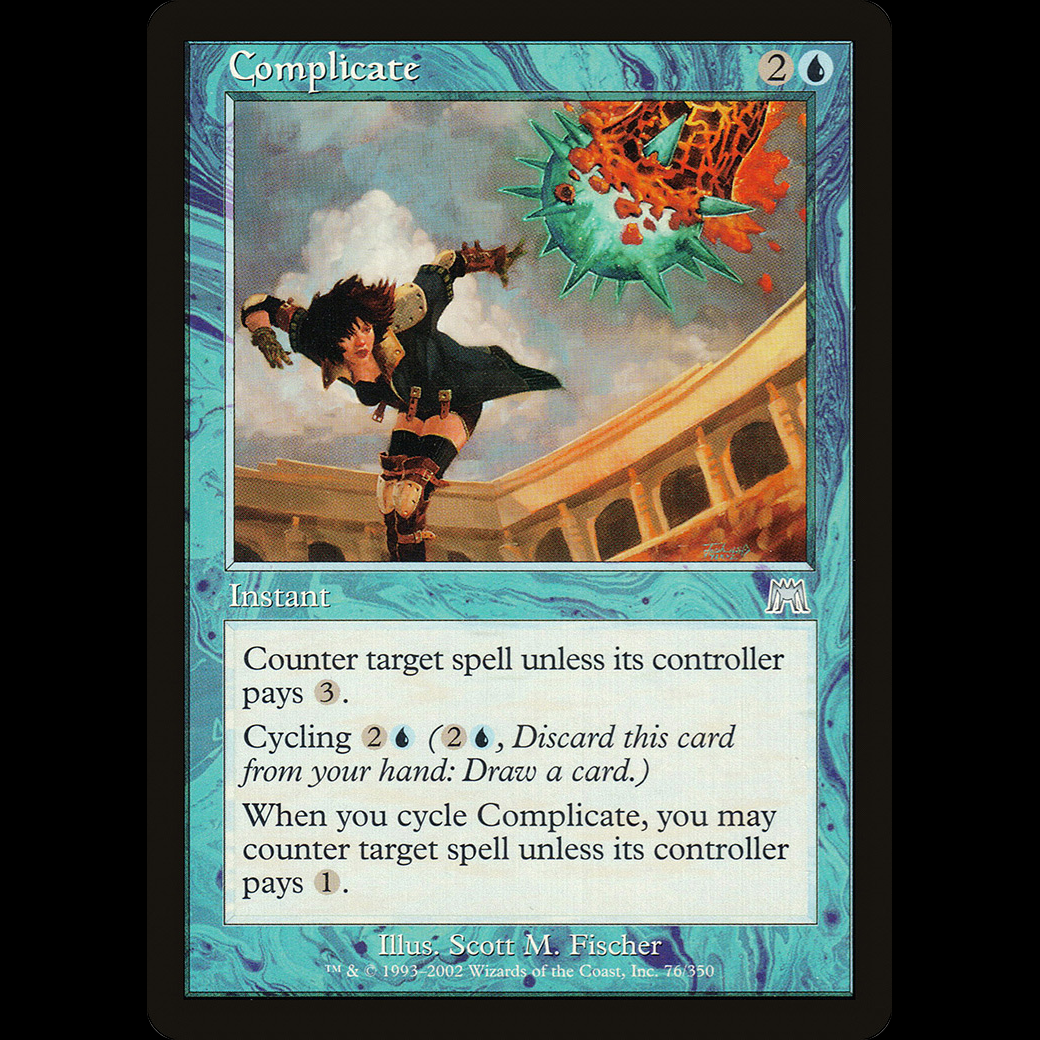 When you cycle Complicate, you may counter target spell unless its controller pays .