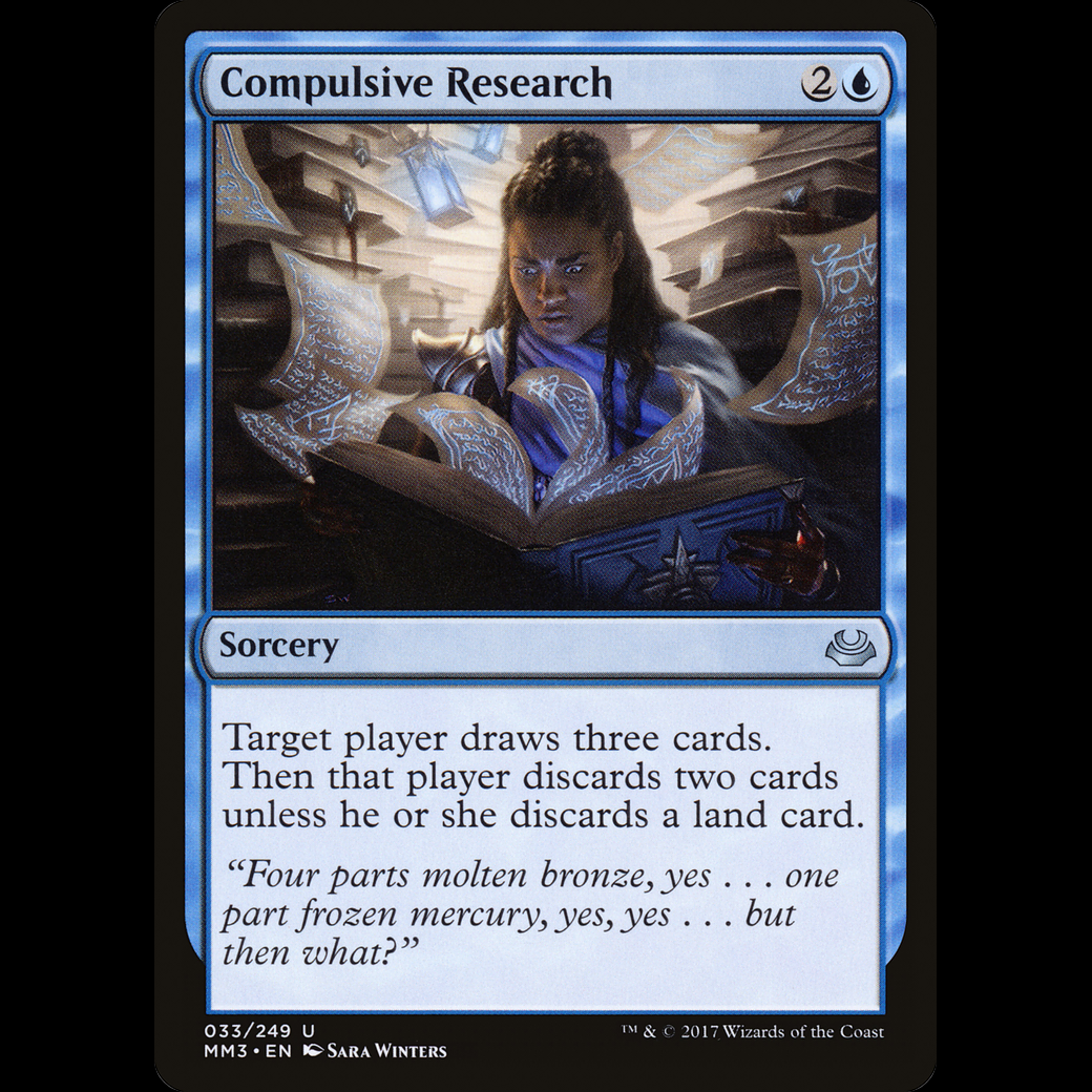 Target player draws three cards. Then that player discards two cards unless they discard a land card.