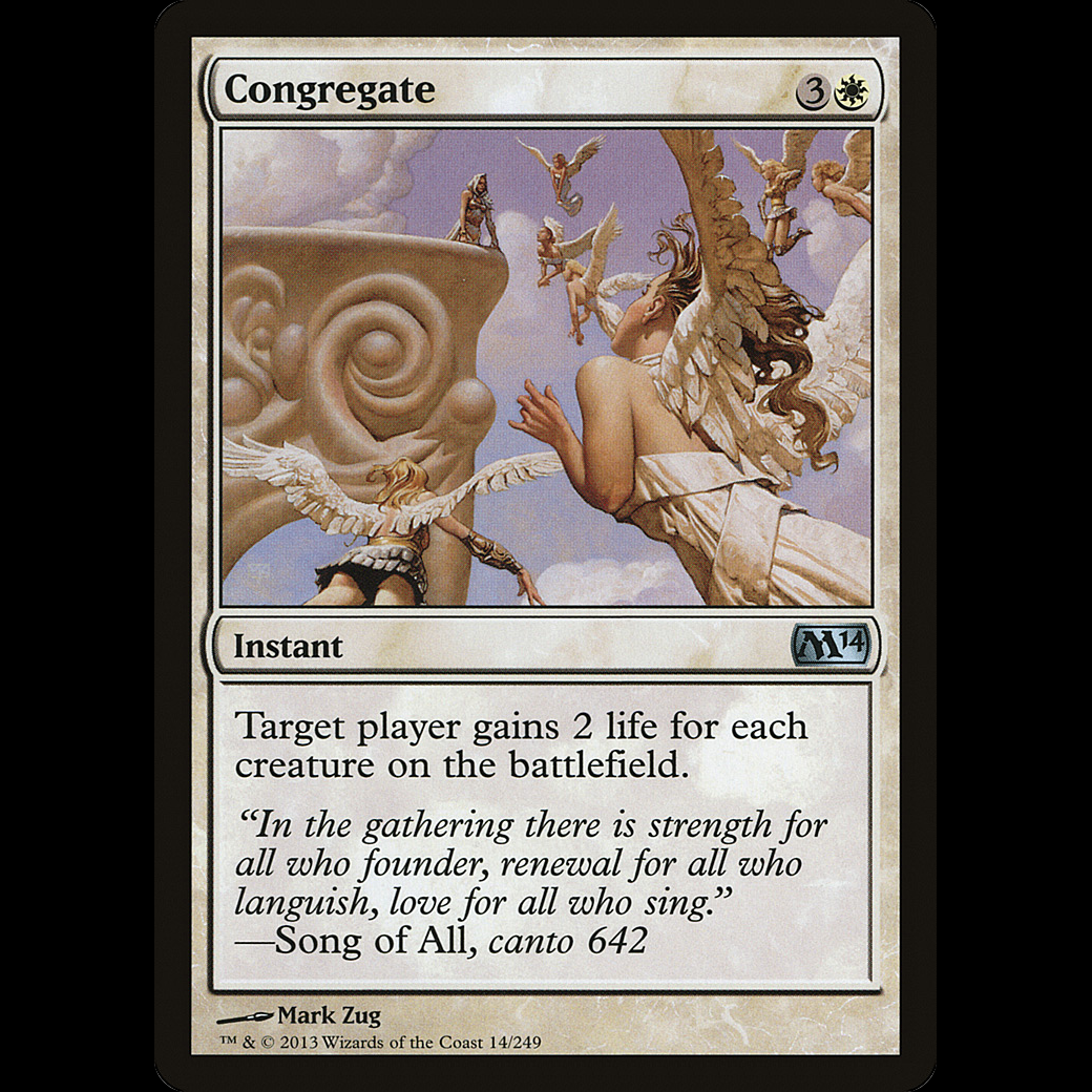 MTG Congregate Magic 2014Target player gains 2 life for each creature on the battlefield.