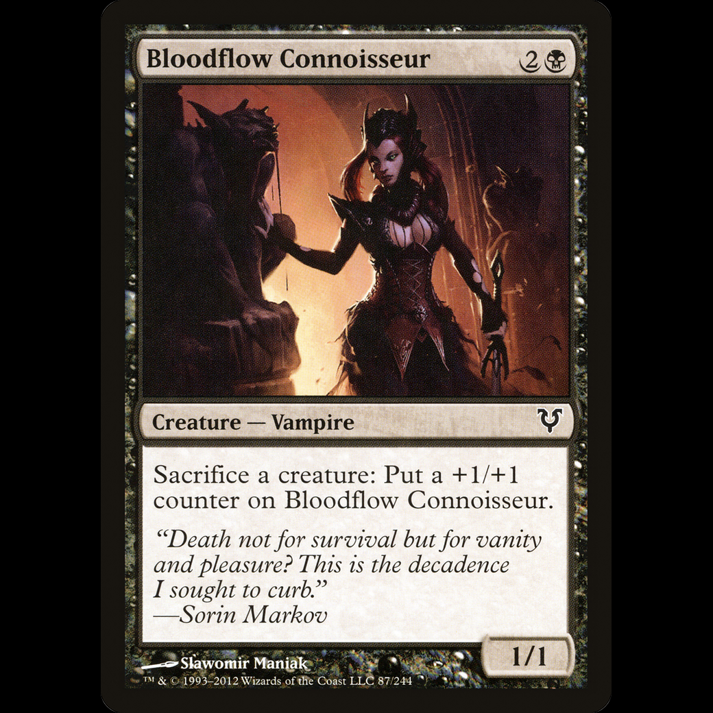 Sacrifice a creature: Put a +1/+1 counter on Bloodflow Connoisseur.