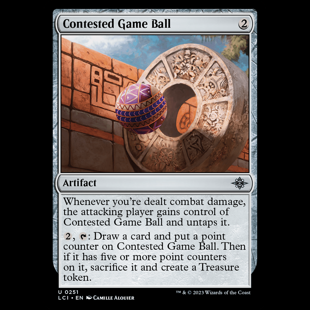 , : Draw a card and put a point counter on Contested Game Ball. Then if it has five or more point counters on it, sacrifice it and create a Treasure token.