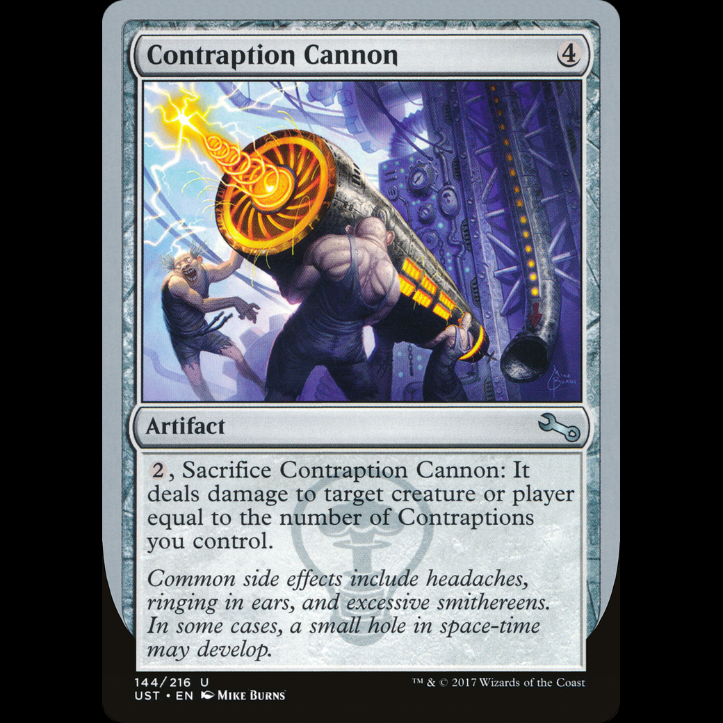 , Sacrifice this artifact: It deals damage to any target equal to the number of Contraptions you control.
