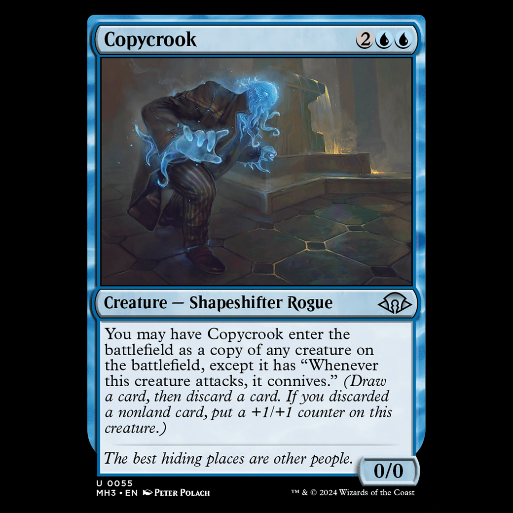 You may have this creature enter as a copy of any creature on the battlefield, except it has "Whenever this creature attacks, it connives." (Draw a card, then discard a card. If you discarded a nonland card, put a +1/+1 counter on this creature.)