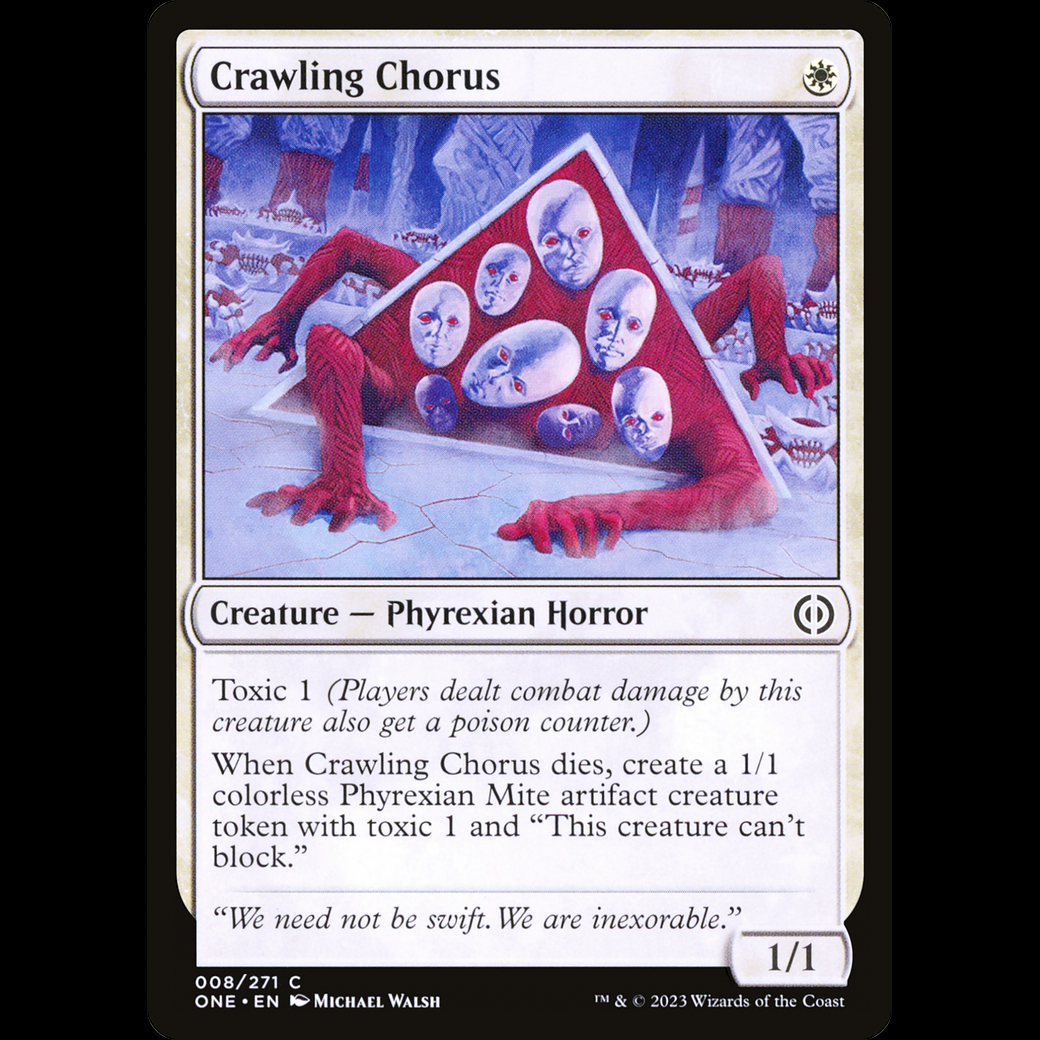 When Crawling Chorus dies, create a 1/1 colorless Phyrexian Mite artifact creature token with toxic 1 and "This creature can't block."