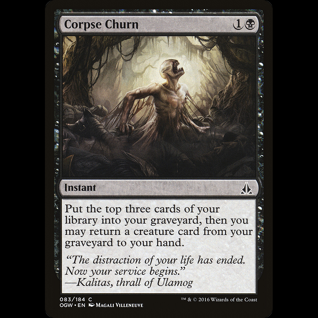 Mill three cards, then you may return a creature card from your graveyard to your hand. (To mill a card, put the top card of your library into your graveyard.)