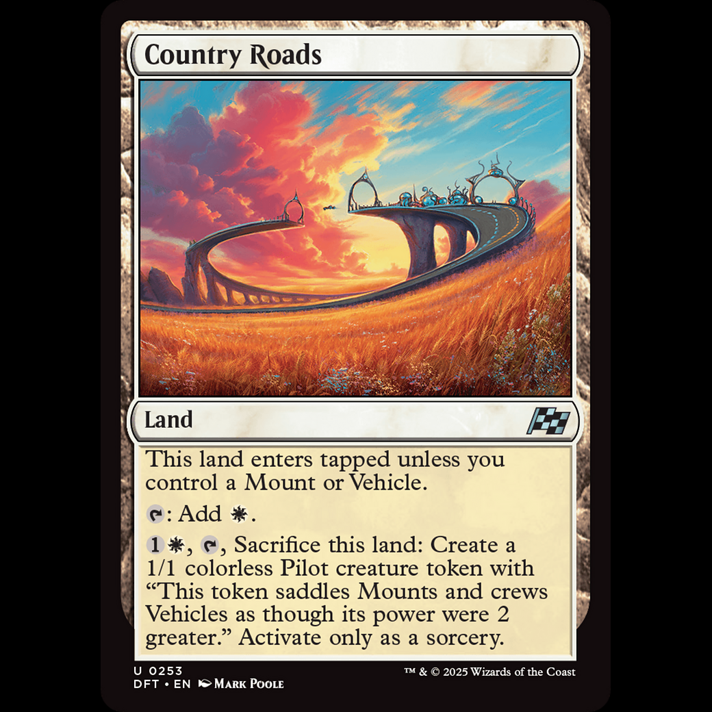 , , Sacrifice this land: Create a 1/1 colorless Pilot creature token with "This token saddles Mounts and crews Vehicles as though its power were 2 greater." Activate only as a sorcery.