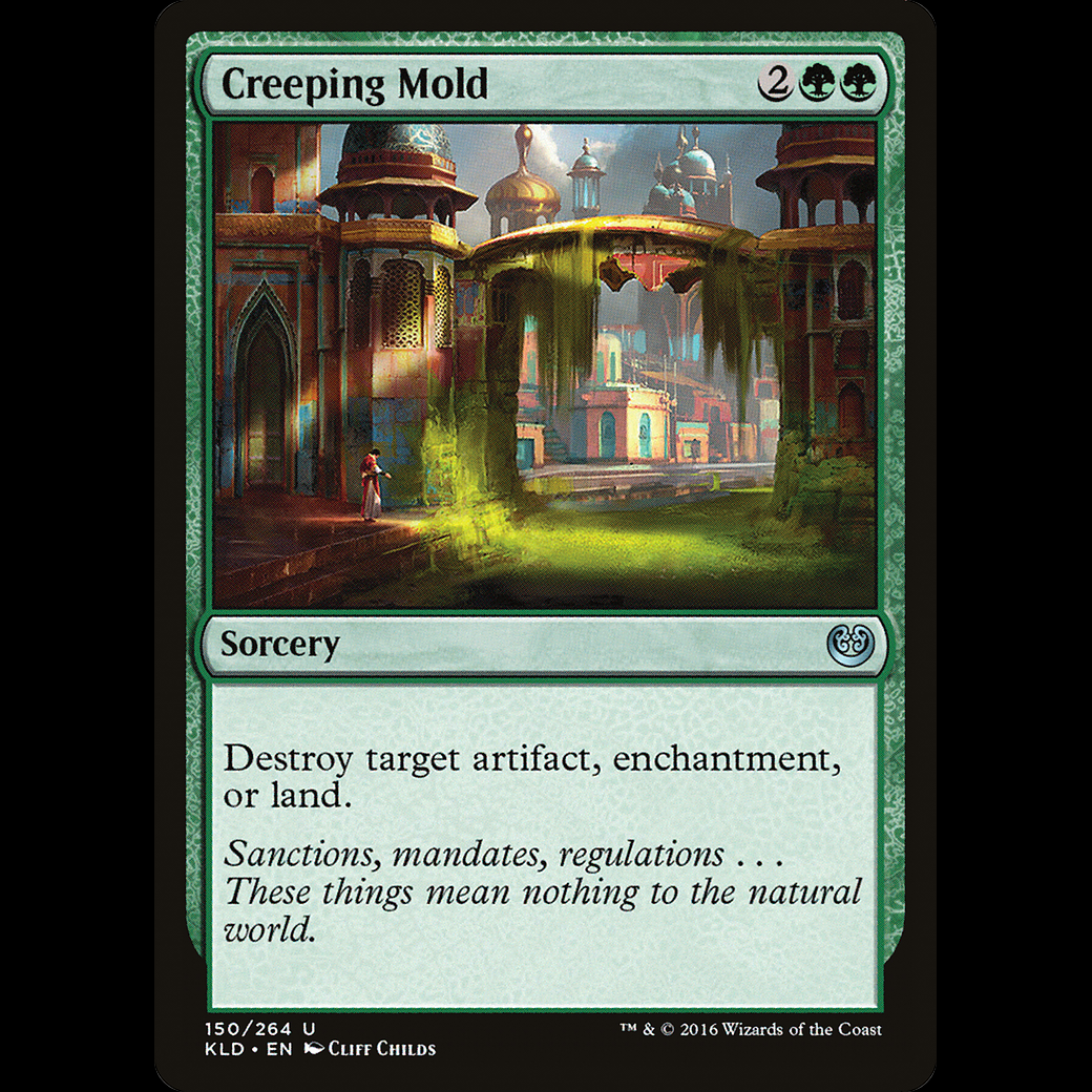 MTG Creeping Mold KaladeshDestroy target artifact, enchantment, or land.