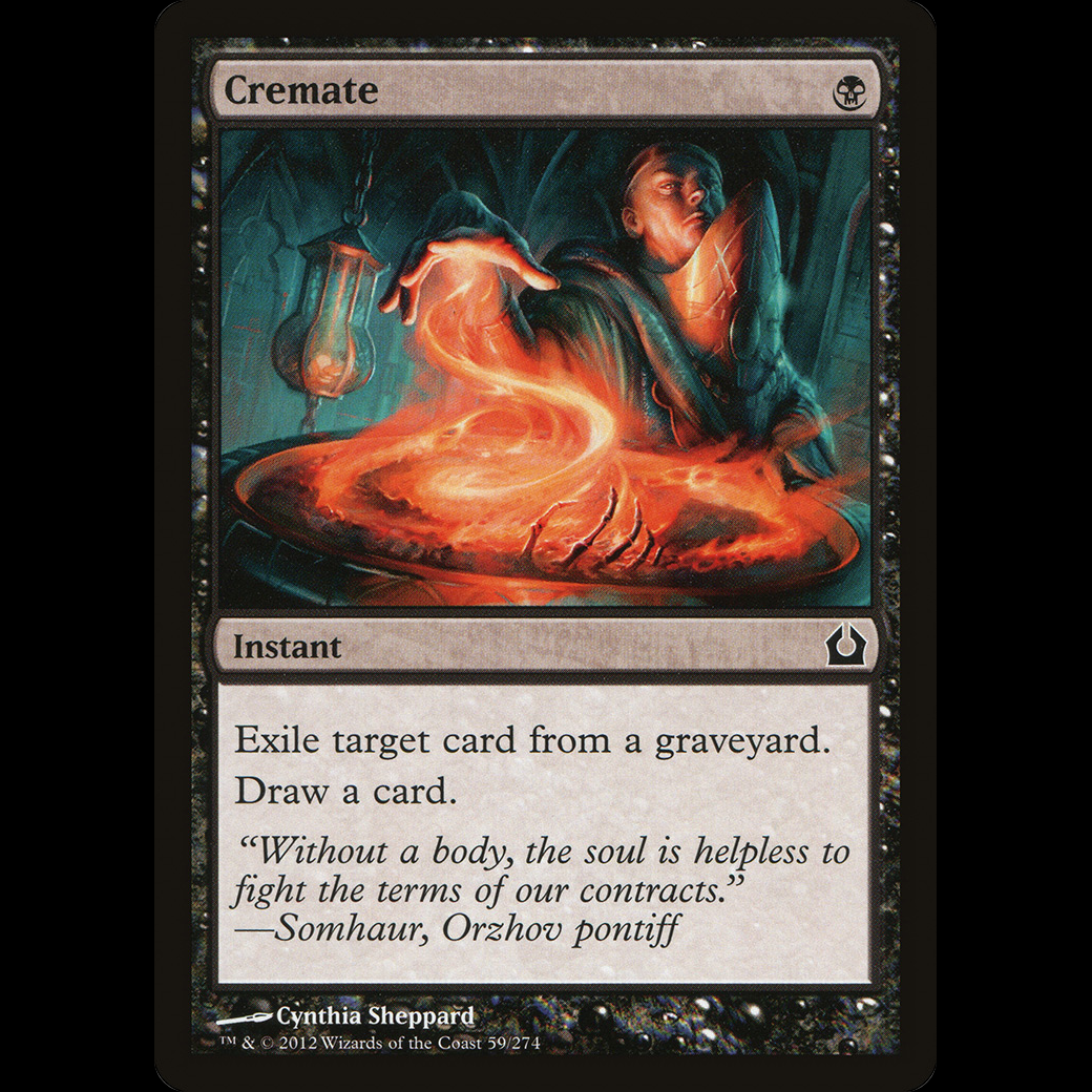 MTG Cremate Return to RavnicaExile target card from a graveyard. Draw a card.