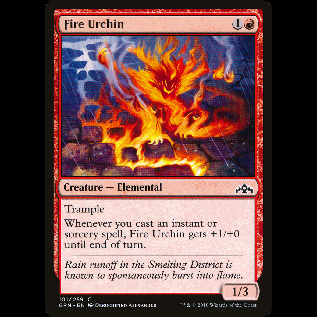Whenever you cast an instant or sorcery spell, Fire Urchin gets +1/+0 until end of turn.