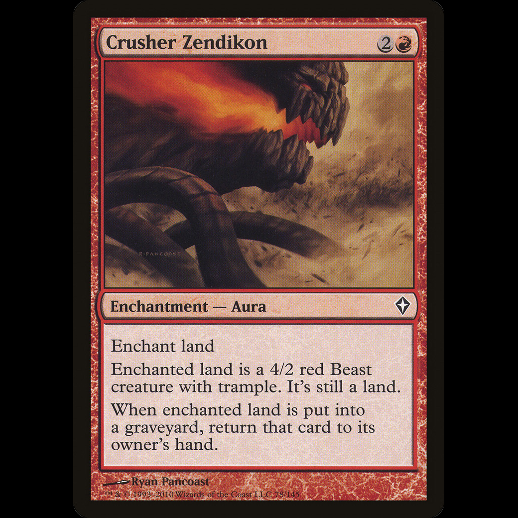 Enchanted land is a 4/2 red Beast creature with trample. It's still a land.