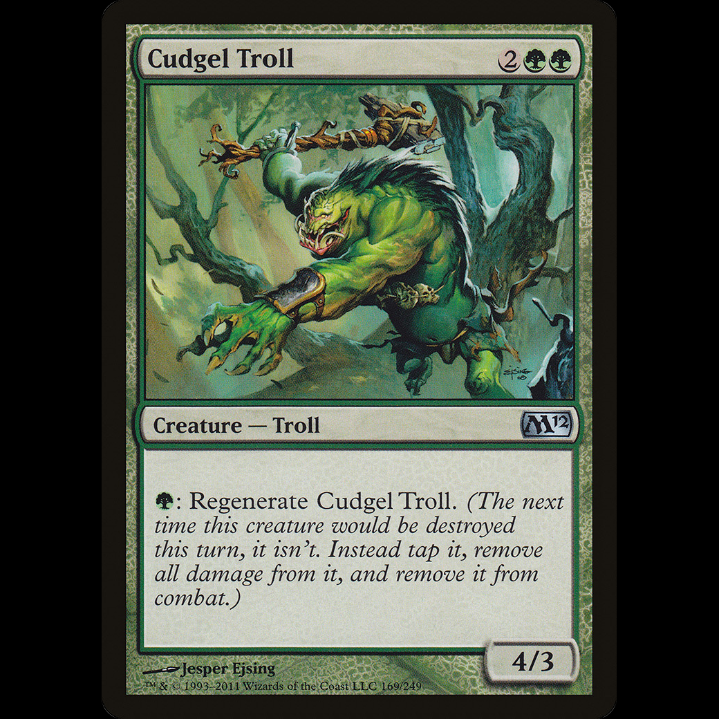 : Regenerate Cudgel Troll. (The next time this creature would be destroyed this turn, it isn't. Instead tap it, remove all damage from it, and remove it from combat.)