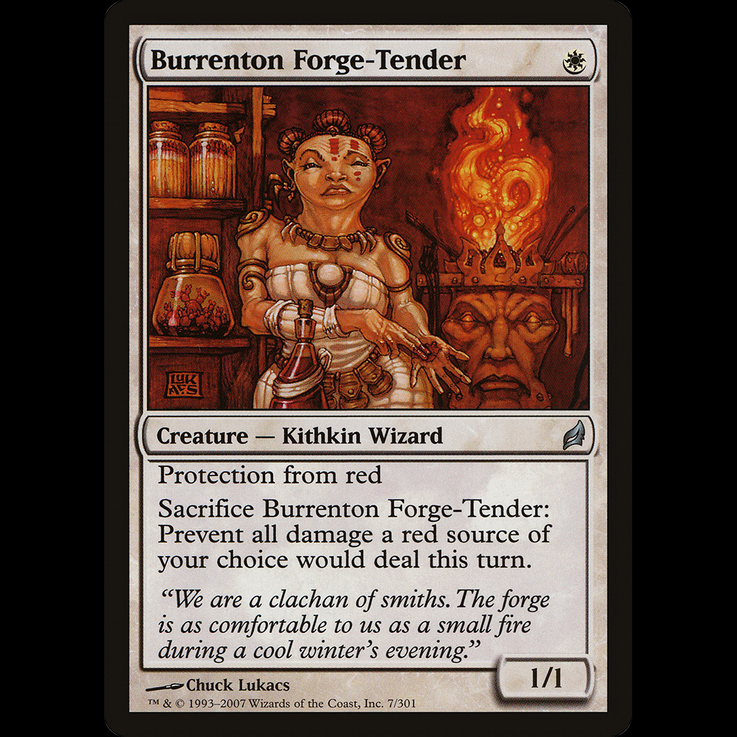 Sacrifice Burrenton Forge-Tender: Prevent all damage a red source of your choice would deal this turn.