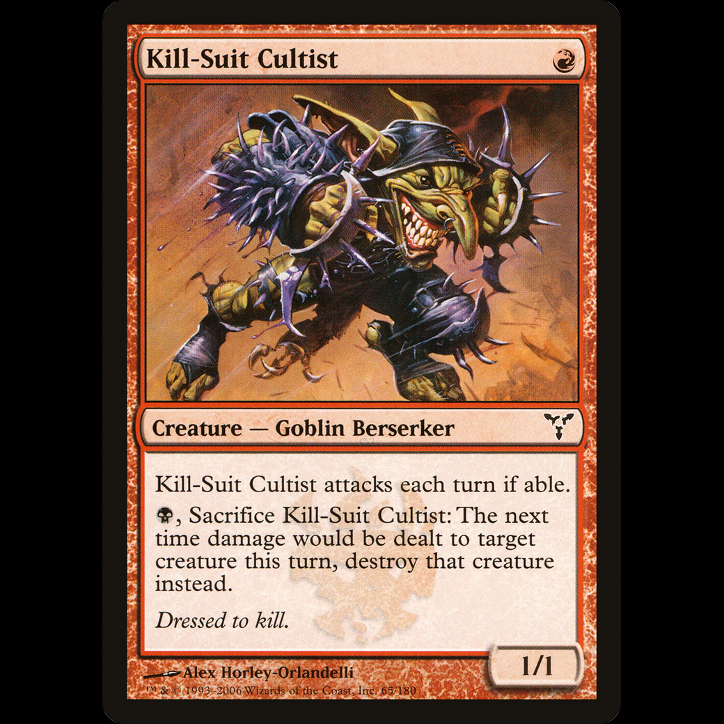 , Sacrifice Kill-Suit Cultist: The next time damage would be dealt to target creature this turn, destroy that creature instead.