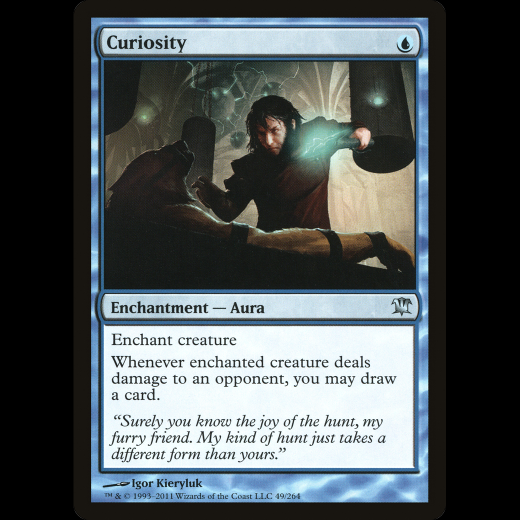 Whenever enchanted creature deals damage to an opponent, you may draw a card.