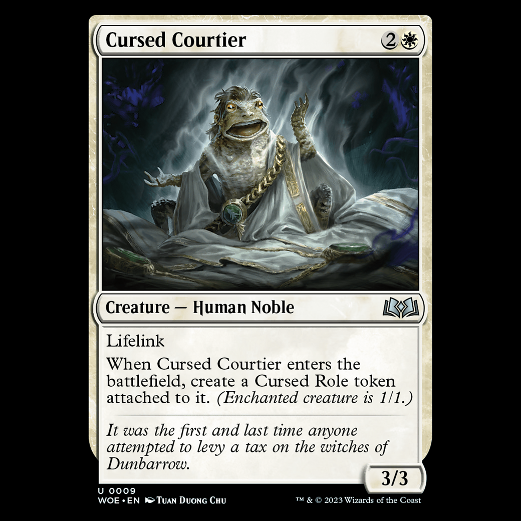 When Cursed Courtier enters the battlefield, create a Cursed Role token attached to it. (Enchanted creature is 1/1.)