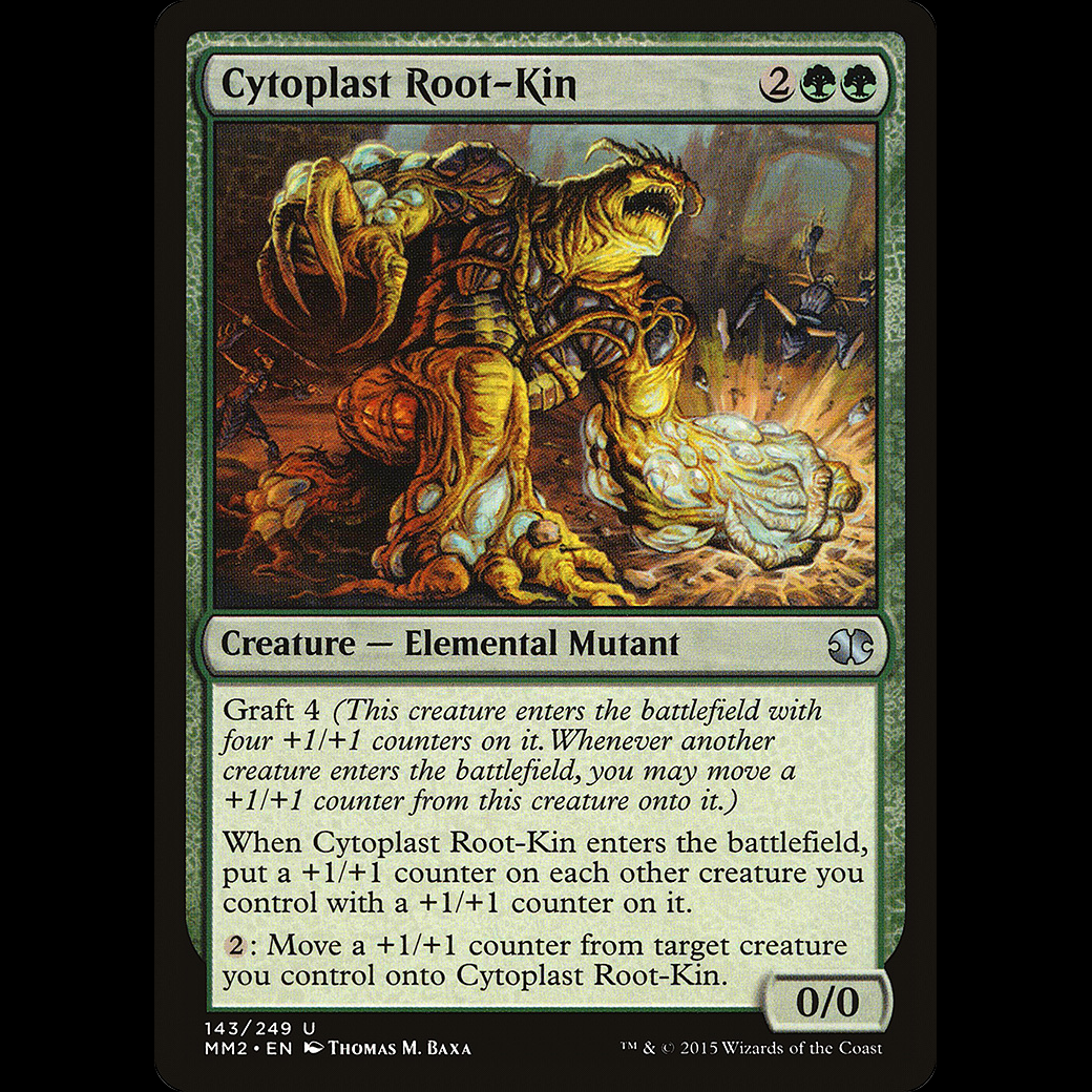 : Move a +1/+1 counter from target creature you control onto Cytoplast Root-Kin.