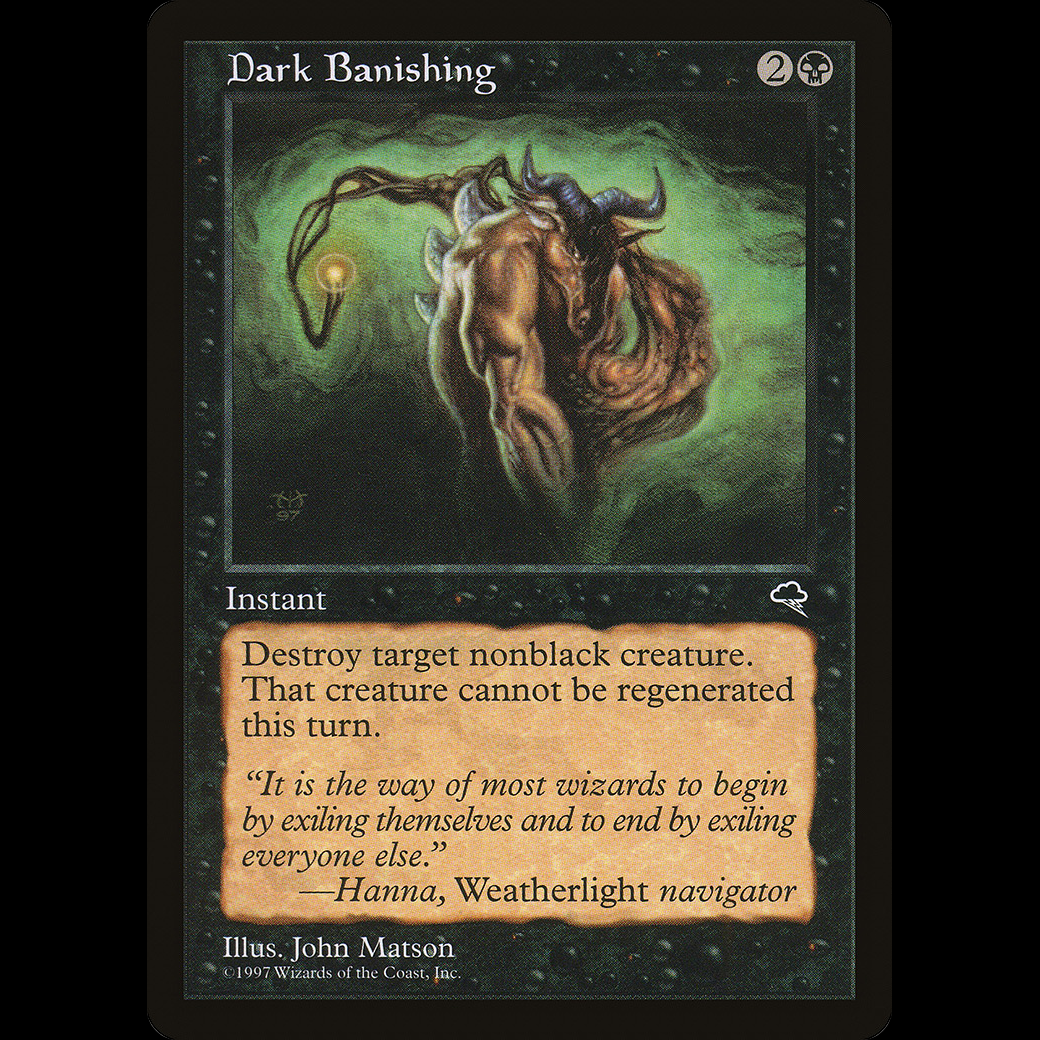 MTG Dark Banishing TempestDestroy target nonblack creature. It can't be regenerated.