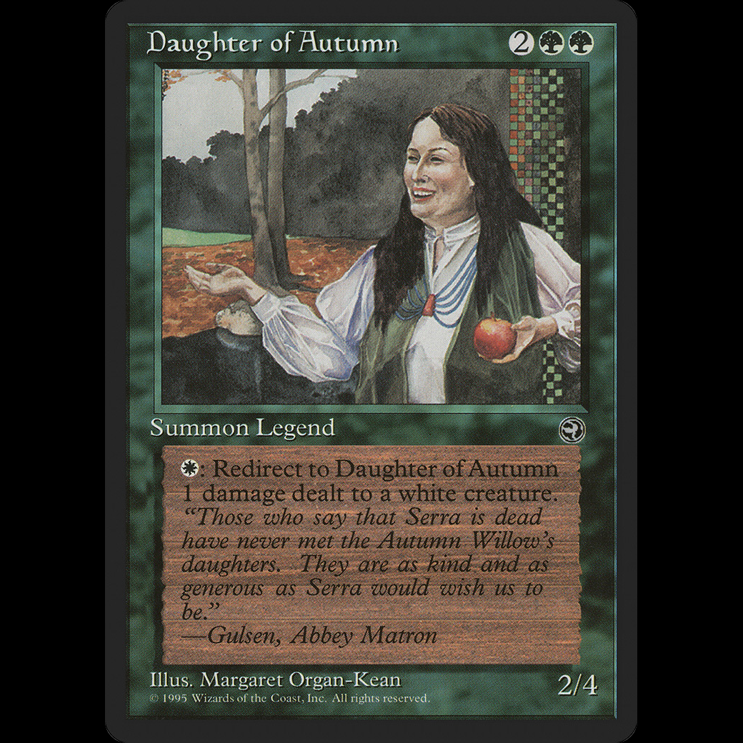 : The next 1 damage that would be dealt to target white creature this turn is dealt to Daughter of Autumn instead.
