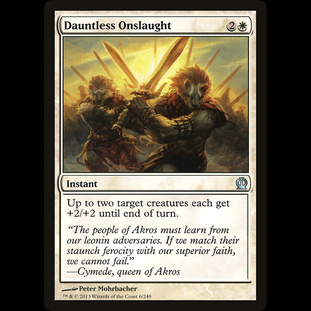 MTG Dauntless Onslaught TherosUp to two target creatures each get +2/+2 until end of turn.