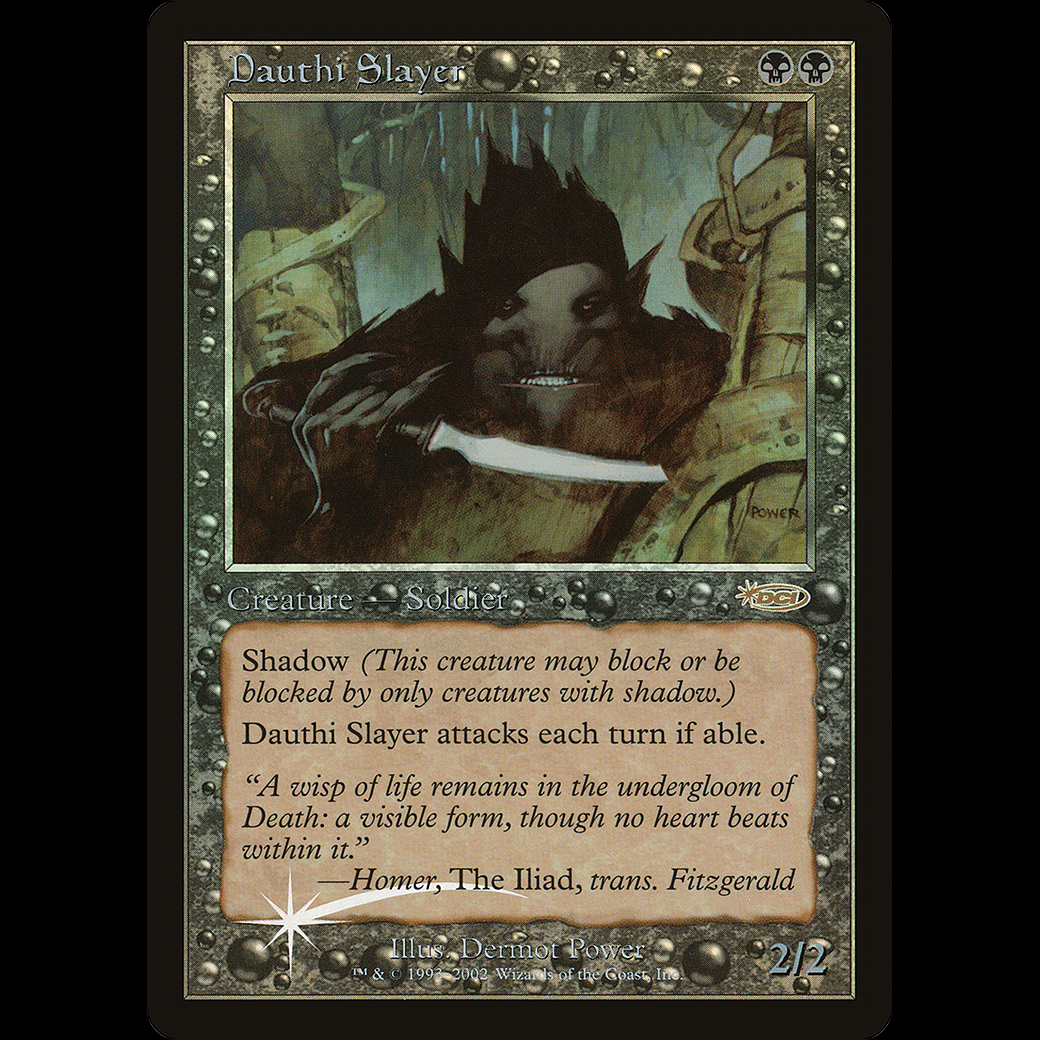 MTG Dauthi Slayer Arena League 2002 pal02#4 Shadow (This creature can block or be blocked by only creatures with shadow.) This creature attacks each combat if able.