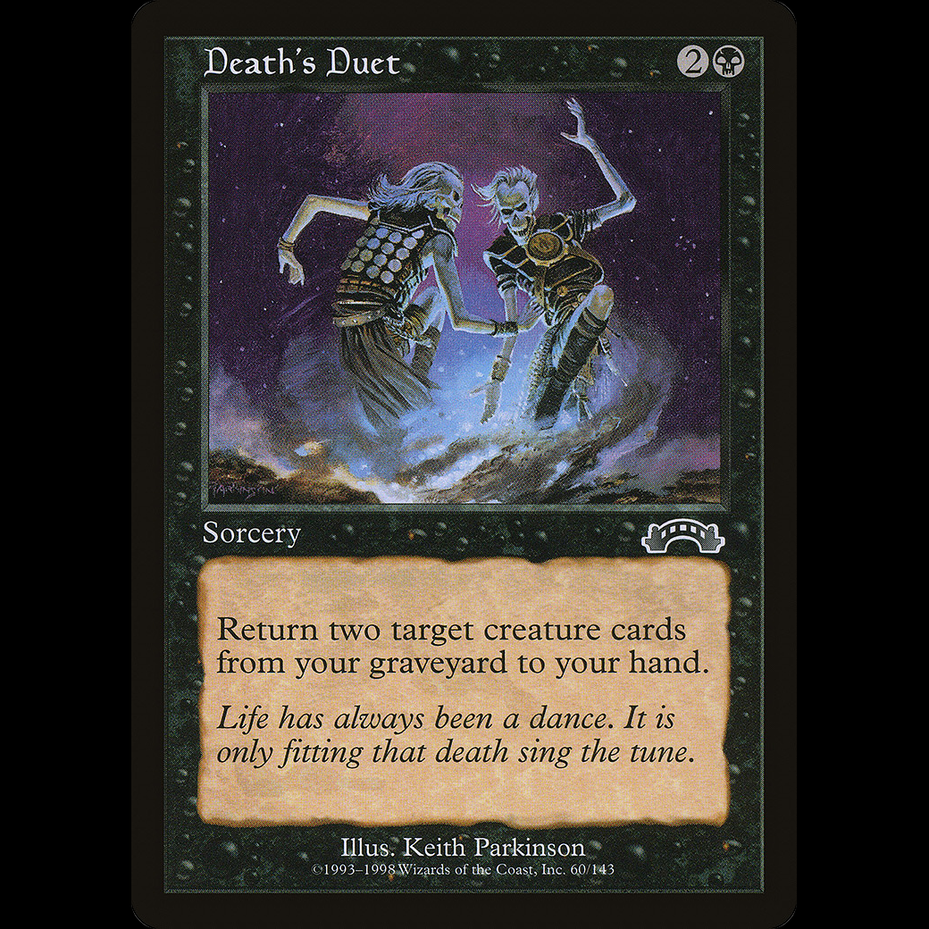 MTG Death's Duet ExodusReturn two target creature cards from your graveyard to your hand.