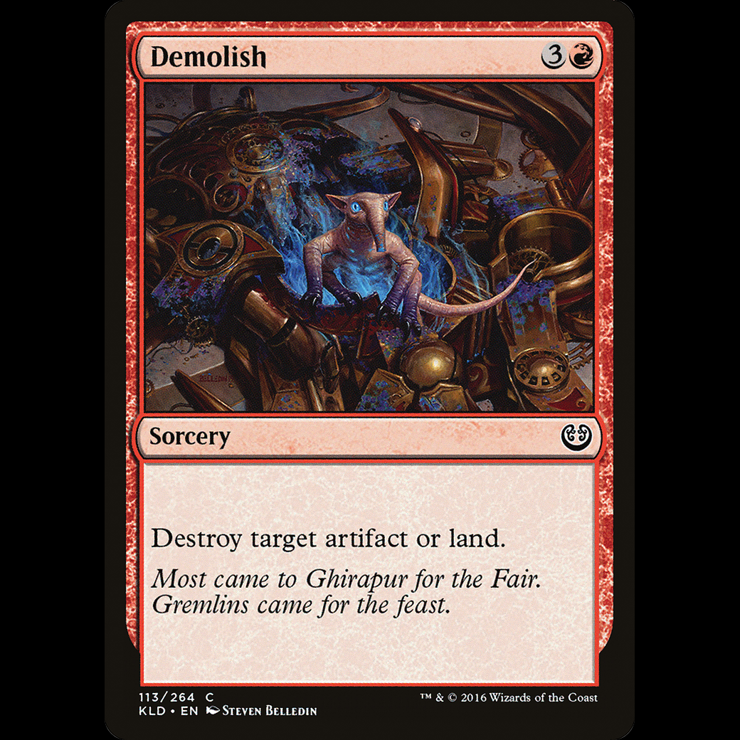 MTG Demoler (Demolish) KaladeshDestroy target artifact or land.