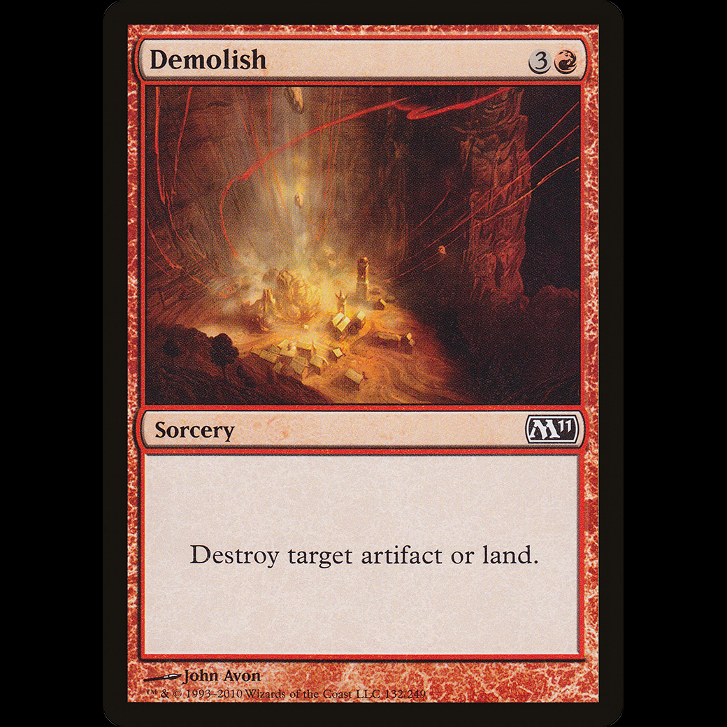 MTG Demolish Magic 2011Destroy target artifact or land.