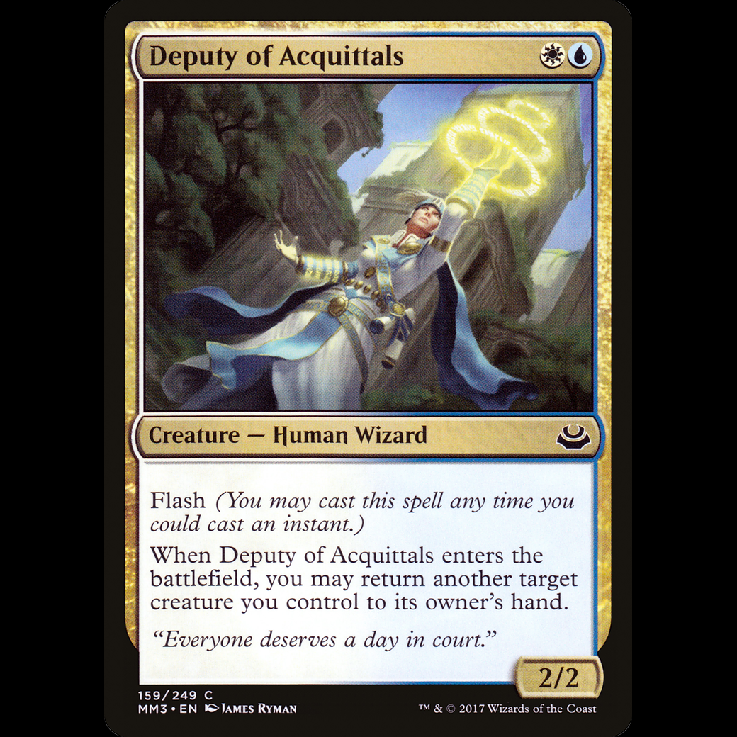 When Deputy of Acquittals enters the battlefield, you may return another target creature you control to its owner's hand.